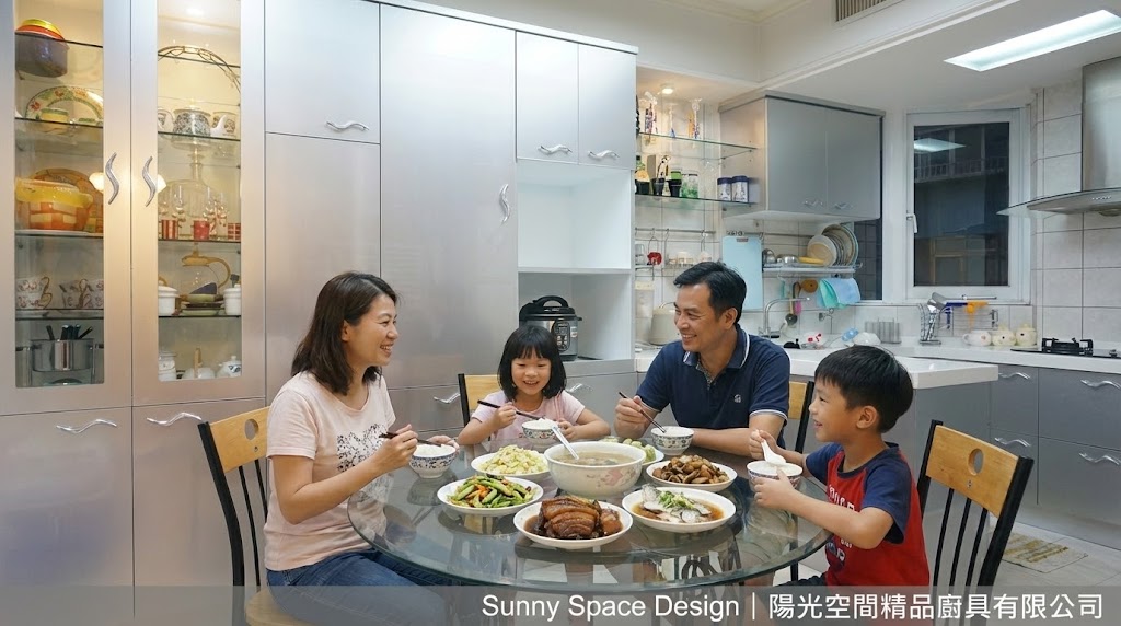 《新北樹林|銀色 F 型廚房 × 高櫃展示區》時尚感滿分的機能型廚房