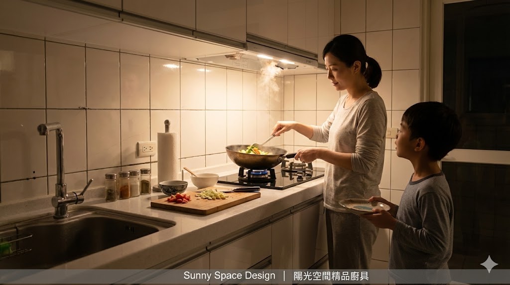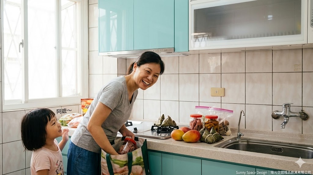 每次從中部娘家要回台北,車廂永遠塞滿:老媽醃肉、阿姨芒果、鄰居水果醋、三舅媽肉粽、嬸嬸自家菜園的青菜……長輩總覺得冰箱裡的一切都該讓你帶回去。回家就是爽,小孩餓了、無聊了、要換尿布,全都是「去找阿嬤」就解決。 今天這套廚具,就是專為這種「回家當蛋黃哥、假裝單身的媽媽」打造——簡單、好清潔、耐用、省心,一字型 221cm 小廚房,也能煮出家的味道。