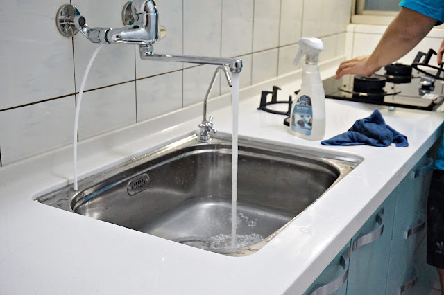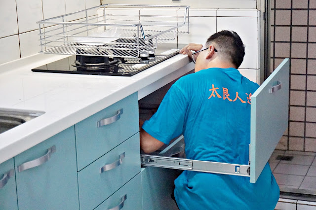 最後師傅很仔細的在櫃體周圍補上矽利康,交代我說當天先不要廚房,才能讓矽利康快點乾燥