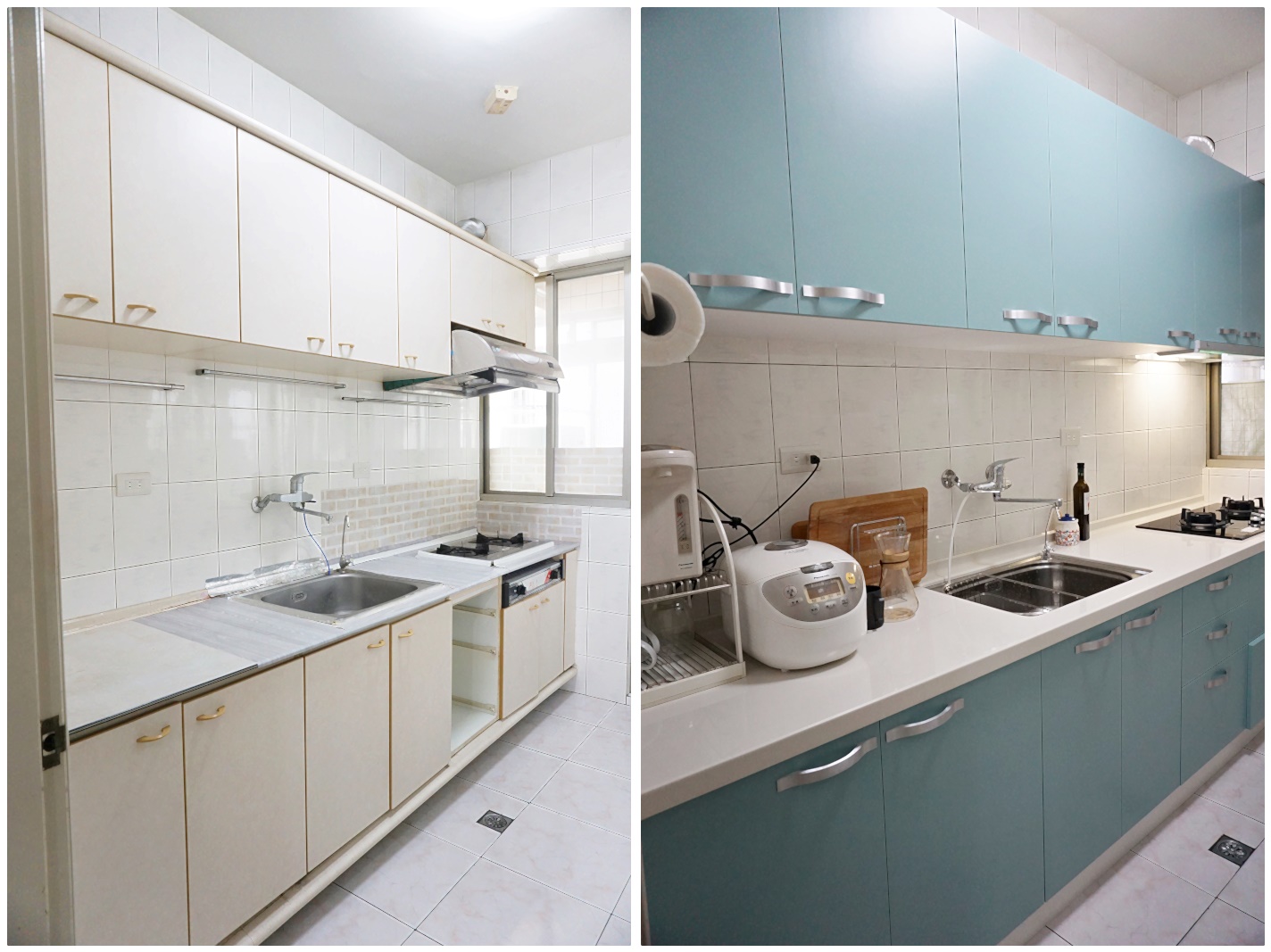 (其實當下看一小塊色板並沒有想到類似蒂芬尼藍,但廚具完成後不只我覺得,連好幾位G友也說是蒂芬尼藍呢)