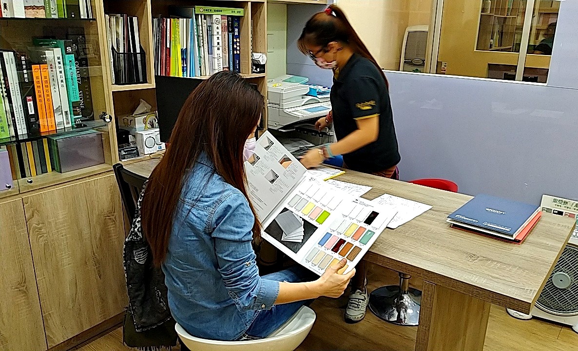 加上在現場摸過人造石的觸感,以及經過估算後價位還在預算內,所以曼蒂媽動搖了原本的設定,未來檯面想改用價位再高一點的韓國人造石了