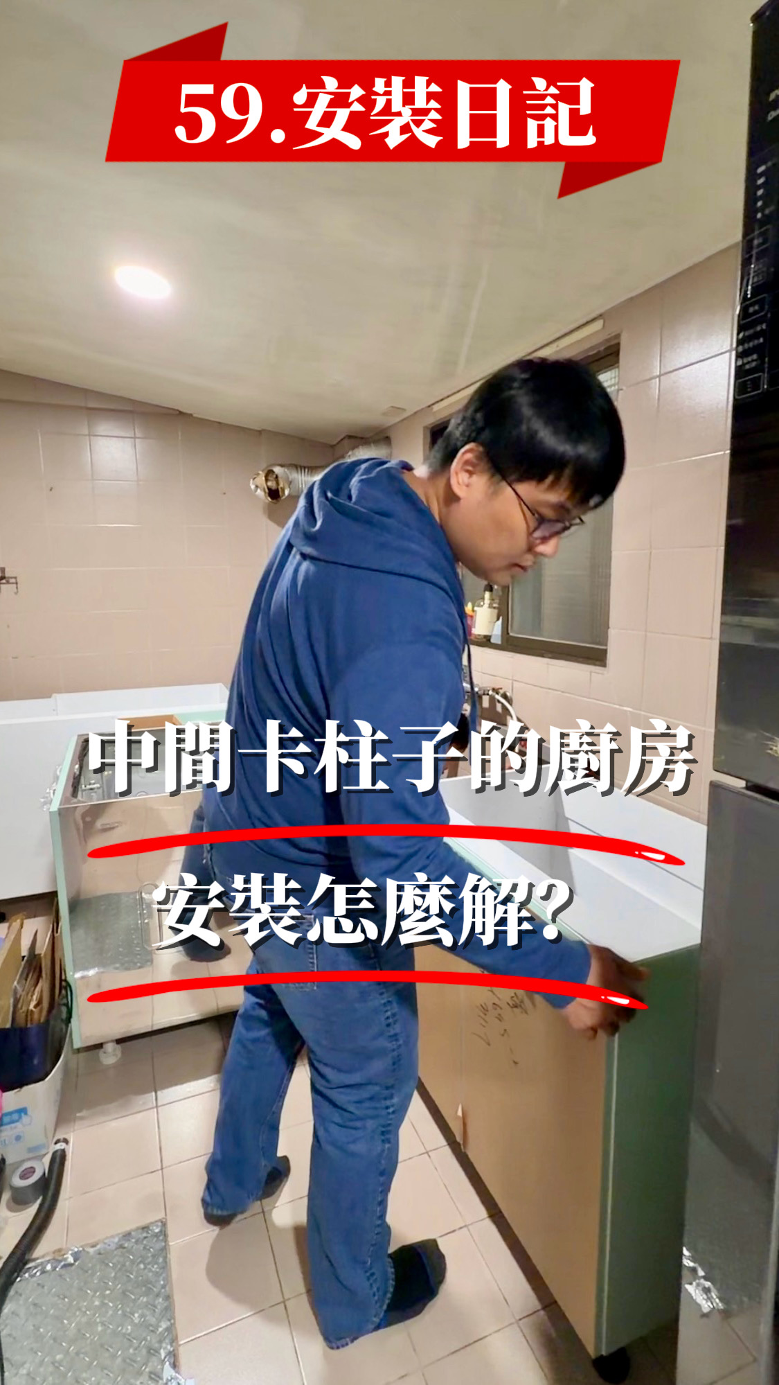 《安裝日記》59.中間卡柱子的廚房,安裝怎麼解?