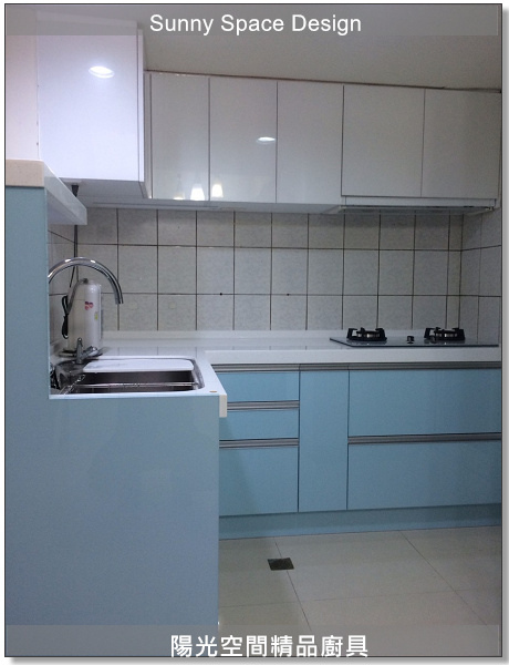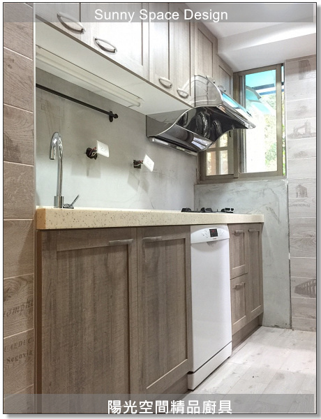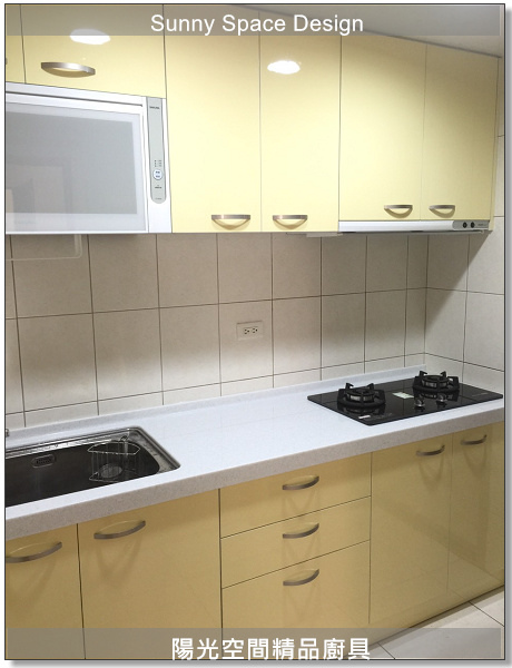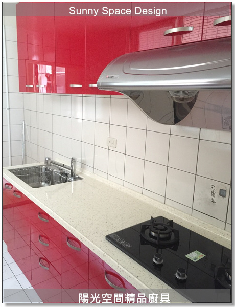 材質:三星人造石PS813+木心板桶身(水槽櫃不銹鋼桶身)+水晶門板(上108,下W516)+下門板崁G型鋁把手+全組廚具國產緩衝