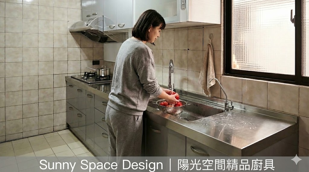 新北板橋區國光街|一字型 270cm|不銹鋼檯面止水設計 × 下櫃不銹鋼桶身 × 功能滿配的耐用系廚房。