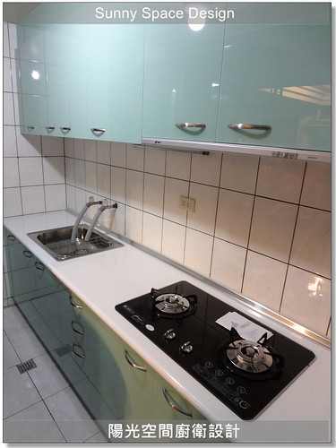 尺寸:341cm廚具上下櫃+180cm平台+60cm電器櫃 材質:韓國人造石檯面+木心板桶身+水晶門板+櫻花三機+牆面貼烤漆玻璃