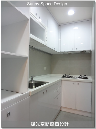 尺寸:L型廚具上下櫃:194*125 +60CM電器櫃 材質:韓國人造石檯面+木心板桶身+水晶門板+豪山三機
