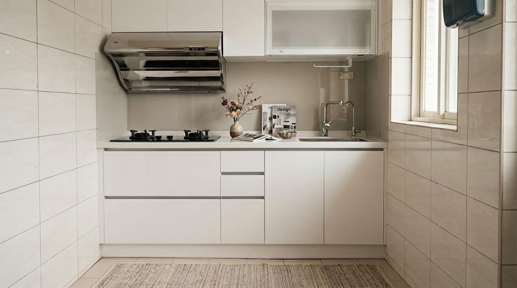 本案位於桃園八德,屋主選擇將下櫃與檯面全面更新,上櫃則保留原有櫃體,僅更換左側下方的上掀門櫃。透過顏色搭配與比例調整,新舊廚具自然融合,整體視覺一致且不突兀,也提供了「局部更新」的實際參考案例。