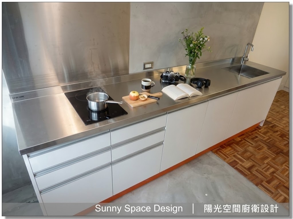 永和豫溪街屋主選用達榮不銹鋼檯面搭配美耐門板與 G 型崁把手,低調卻精緻。專業設計師親自規畫,質感與細節都超越一般標準。