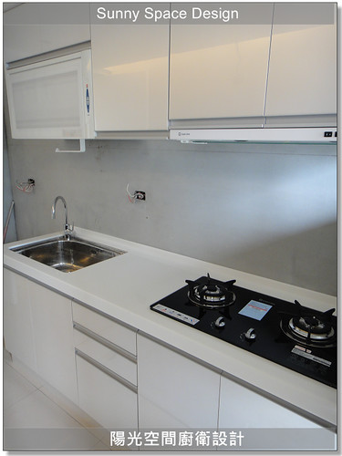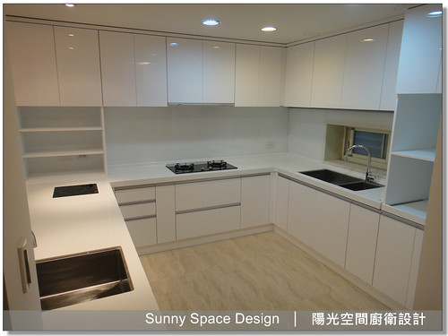 尺寸:L型廚具上下櫃:290*135CM 材質:韓國人造石+木心板桶身+六面結晶鋼烤門板+門板崁G型鋁把手+全組廚具國產緩衝