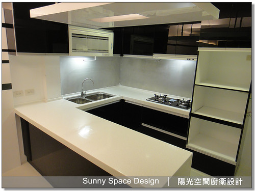 尺寸:下櫃231CM,上櫃305CM 材質:韓國人造石檯面+木心板桶身+水晶門板+下櫃45度斜把手