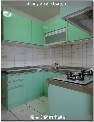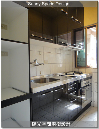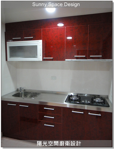 尺寸:191cm廚具上下櫃+216cm上疊櫃+55cm電器櫃 材質:不銹鋼檯面+下櫃不銹鋼桶身,上櫃木心板桶身+水晶門板
