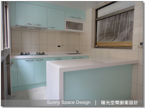 材質:韓國人造石檯面+木心板桶身+水晶門板+門板崁G型鋁把手