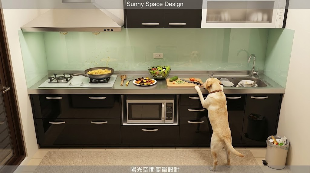 《微波爐收納術的小智慧廚房》|245cm 下櫃 × 155cm 上櫃 × 小空間機能設計