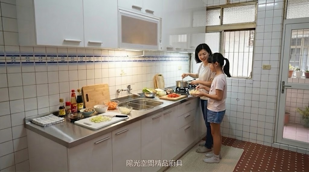 這是一套為年長媽媽更新的老屋廚具。因原廚具老舊、內部損壞導致收納不足,姪女全程代為規劃,選用耐用的不鏽鋼檯面,讓料理動線更順手,也把照顧藏進每天的日常。