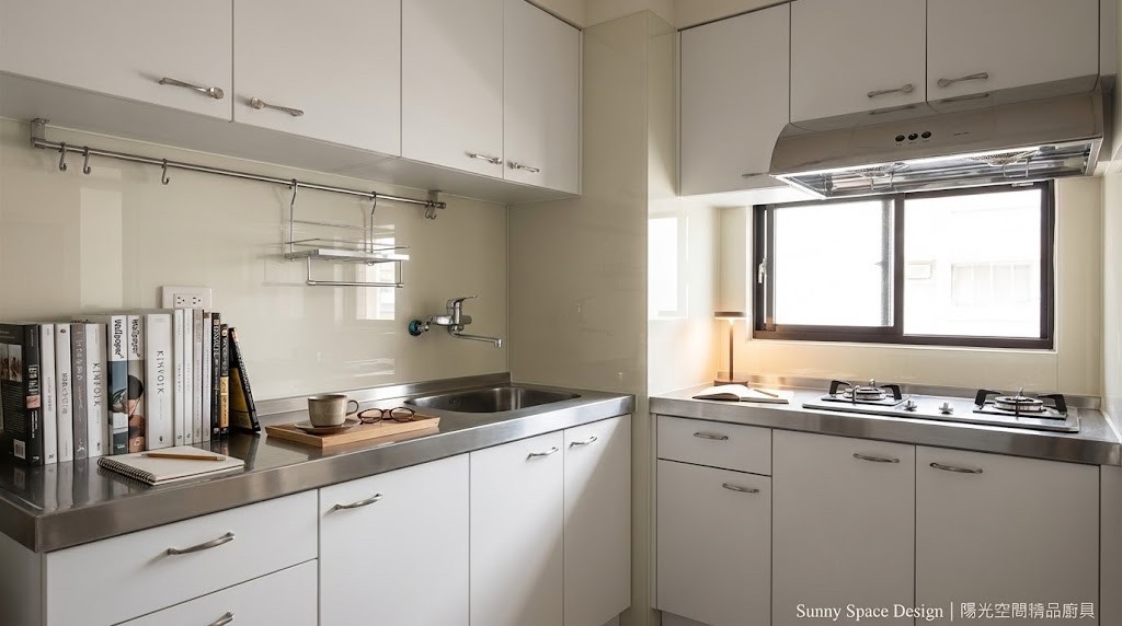業主邱先生為出租用途,希望耐用又不超支,因此選用美耐檯面+美耐門板的高 CP 值組合。亮白新廚房能大幅提升出租吸引力,讓房客一看就喜歡。