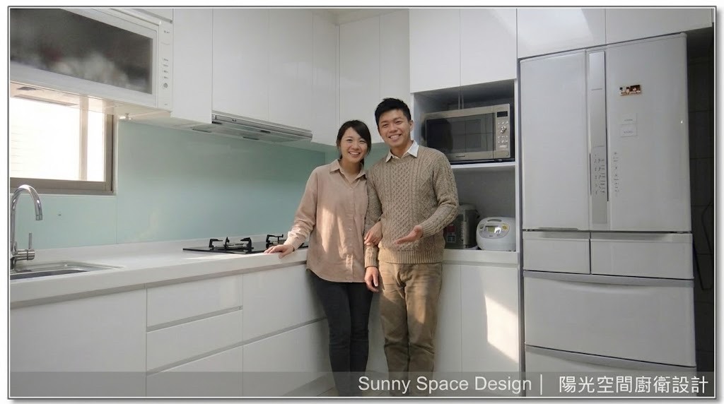 白色人造石 × 水晶門板 × 木地板,打造如外國影集般明亮溫馨的一字型廚房。豪山隱藏式排油煙機與玻璃爐提升質感,是簡約卻非常好用的廚房設計。