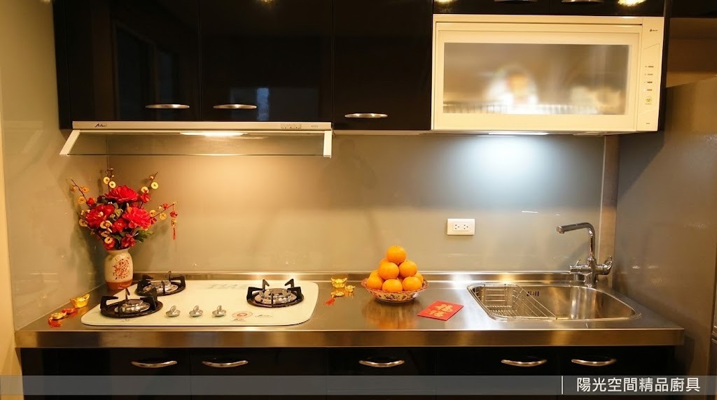 全組無把手設計,呈現俐落、極簡又耐看的單身系風格。搭配韓國人造石檯面、豪山烘碗機與黑白對比配色,打造質感滿分的一字型廚具。