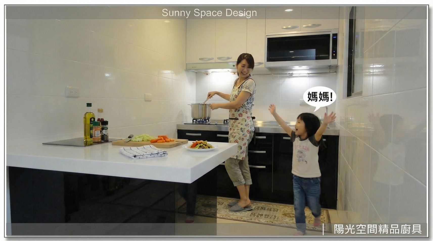 狹長型廚房也能擁有中島感!以不銹鋼檯面搭配韓國人造石吧檯,透過內縮 12 公分調整動線,在有限空間中打造兼具機能與美感的一字型+中島廚房。