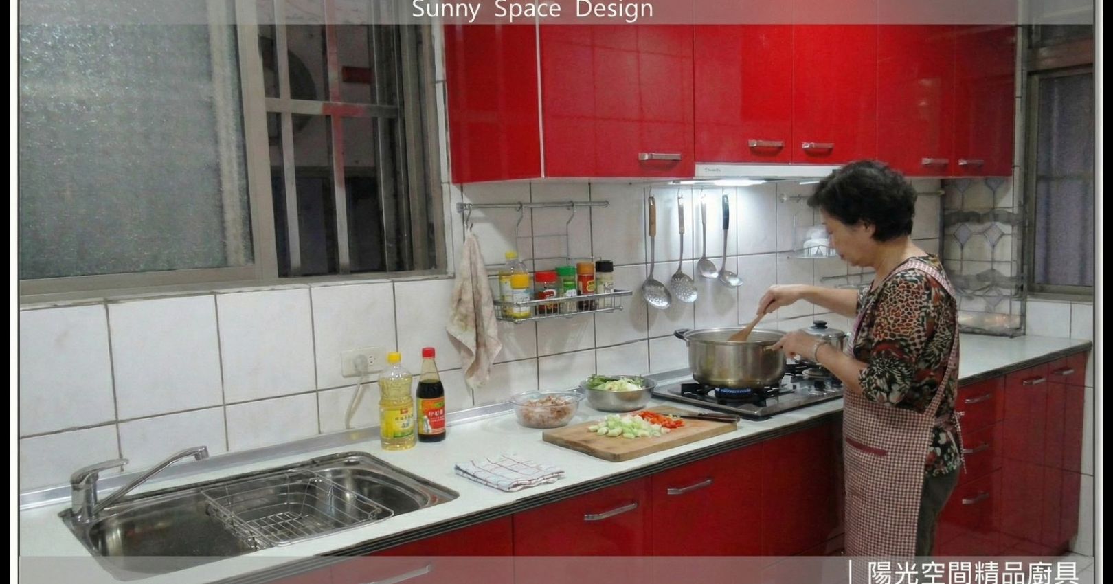 《中和保建路邱先生一字型廚具》|320cm 紅色廚房|珍珠板檯面 × 不銹鋼桶身的高貴實用配置