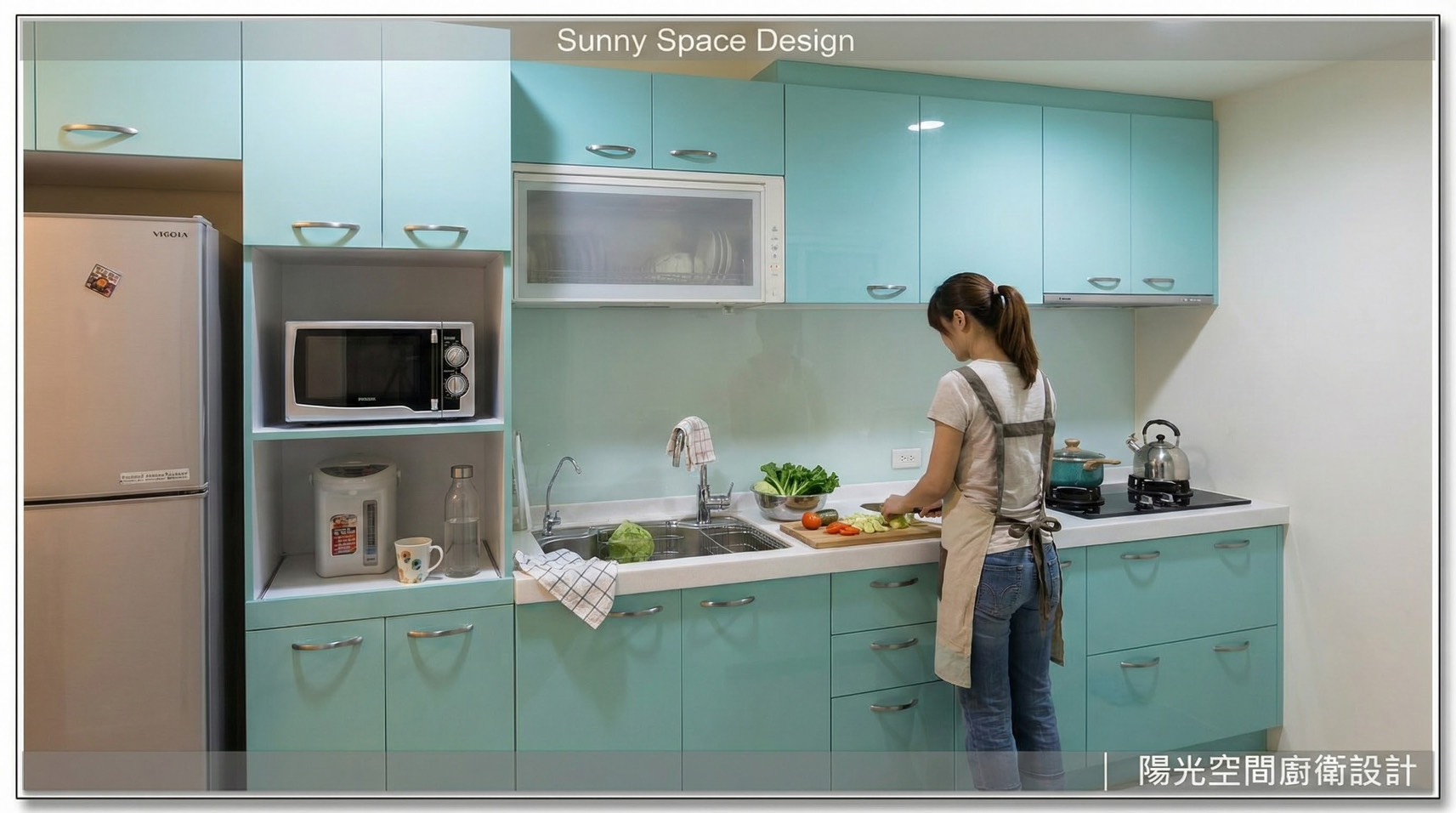 《桃園蘆竹馮小姐一字型廚具》|217cm|美耐板 × 人造石的清爽實用系廚房