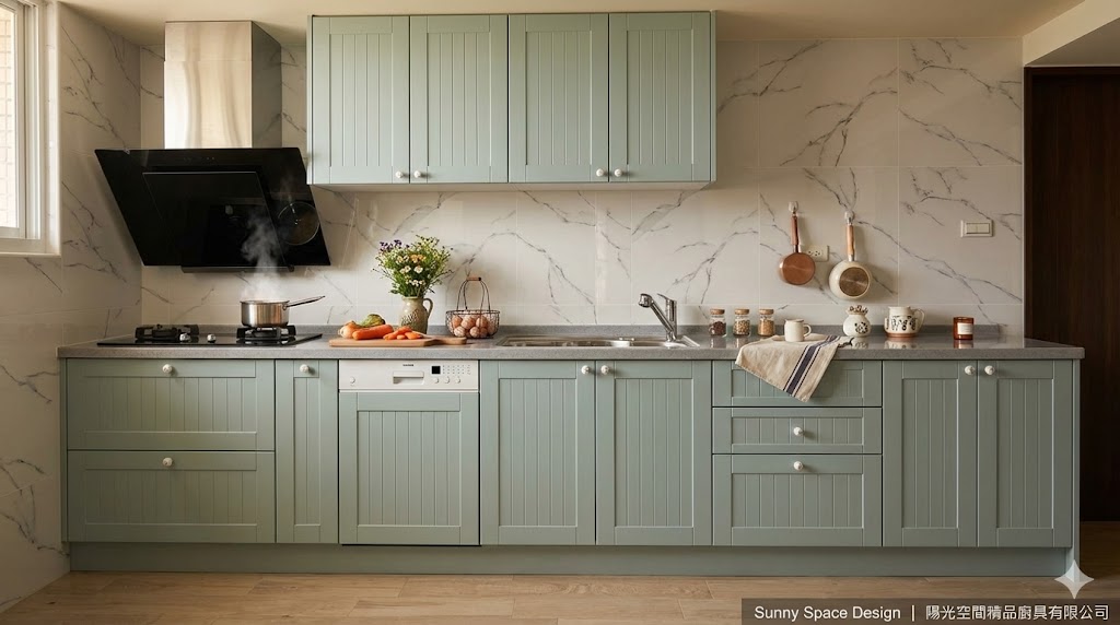 本案例位於台北仁愛路,是一套充滿母愛的鄉村風廚房。從外食族到為了孩子洗手作羹湯,屋主希望打造一個溫柔、實用的料理空間。我們選用淡雅綠鄉村風門板搭配樂天人造石檯面,並規劃了強大的收納機能,讓這間廚房不只是烹飪場所,更是凝聚家人情感的溫馨角落。